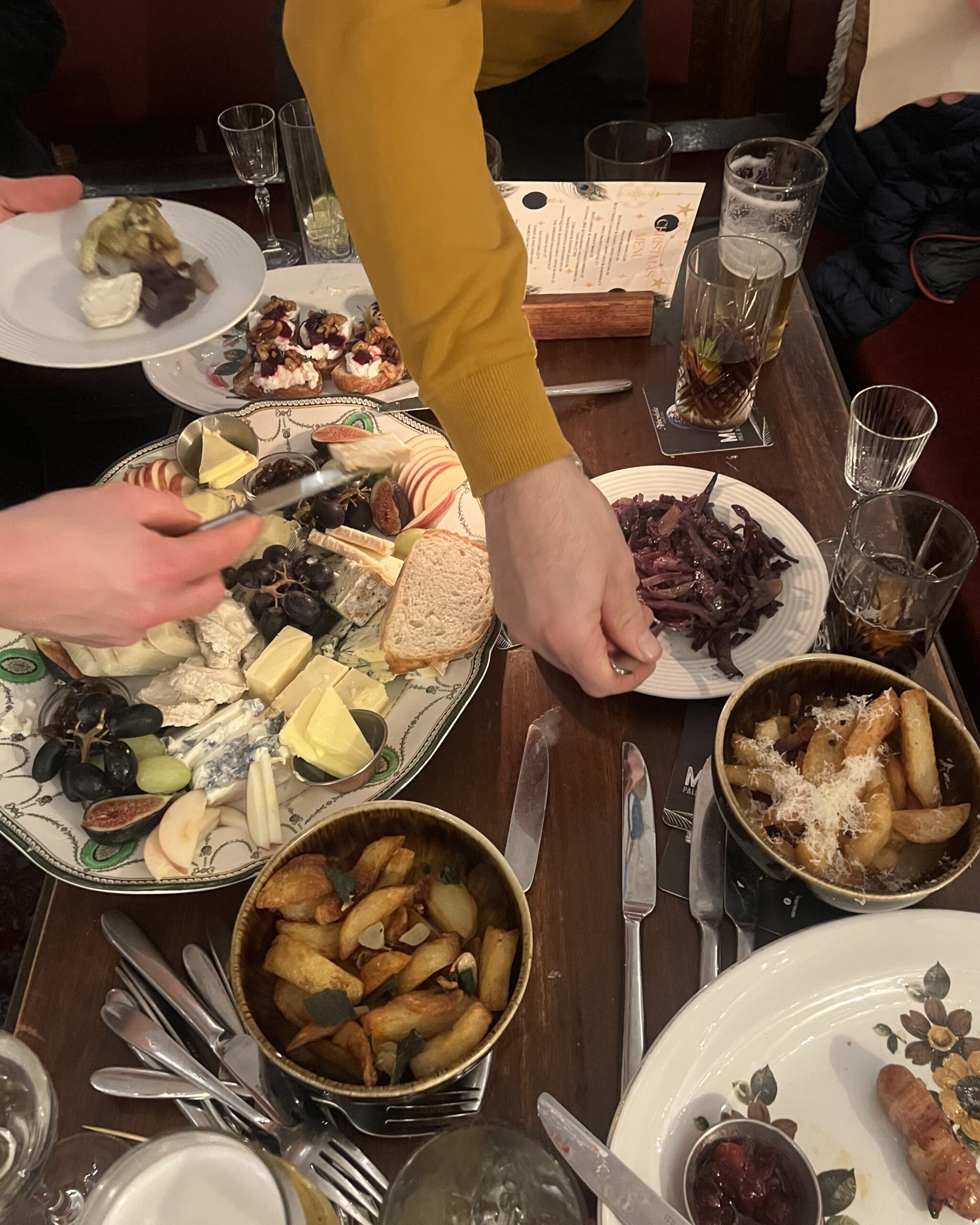 We got merry in one of their cosy side rooms, drinking and eating aplenty. While all the food was incredible (and we definitely ate our body weight in cheese), it was the delicious sprout bhajis that stole the show. As Cathryn perfectly put it: “a revelation!”